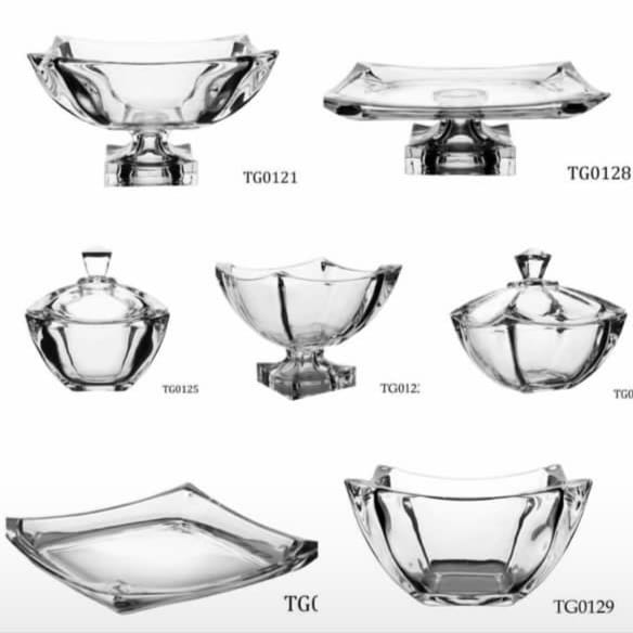 سرویس پذیرایی کریستال 49 پارچه مدل ایگل 49 پارچه شامل: میوه خوری 1 عدد شیرینی خوری 1 عدد کاسه آجیل خوری 1 عدد شکلات خوری  1 عدد (2 پارچه) پیاله آجیل خوری 12 عدد پیش دستی 12 عدد فنجان 12 عدد قندان 2 عدد (4 پارچه) نمکدان 4 عدد