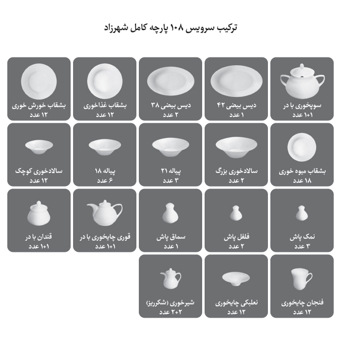 مشاهده محصولات فروشگاهشما در حال ارسال گزارش برای محصولسرویس چینی 108 پارچه زرین مدل مریدین صورتی پیکره شهرزاد